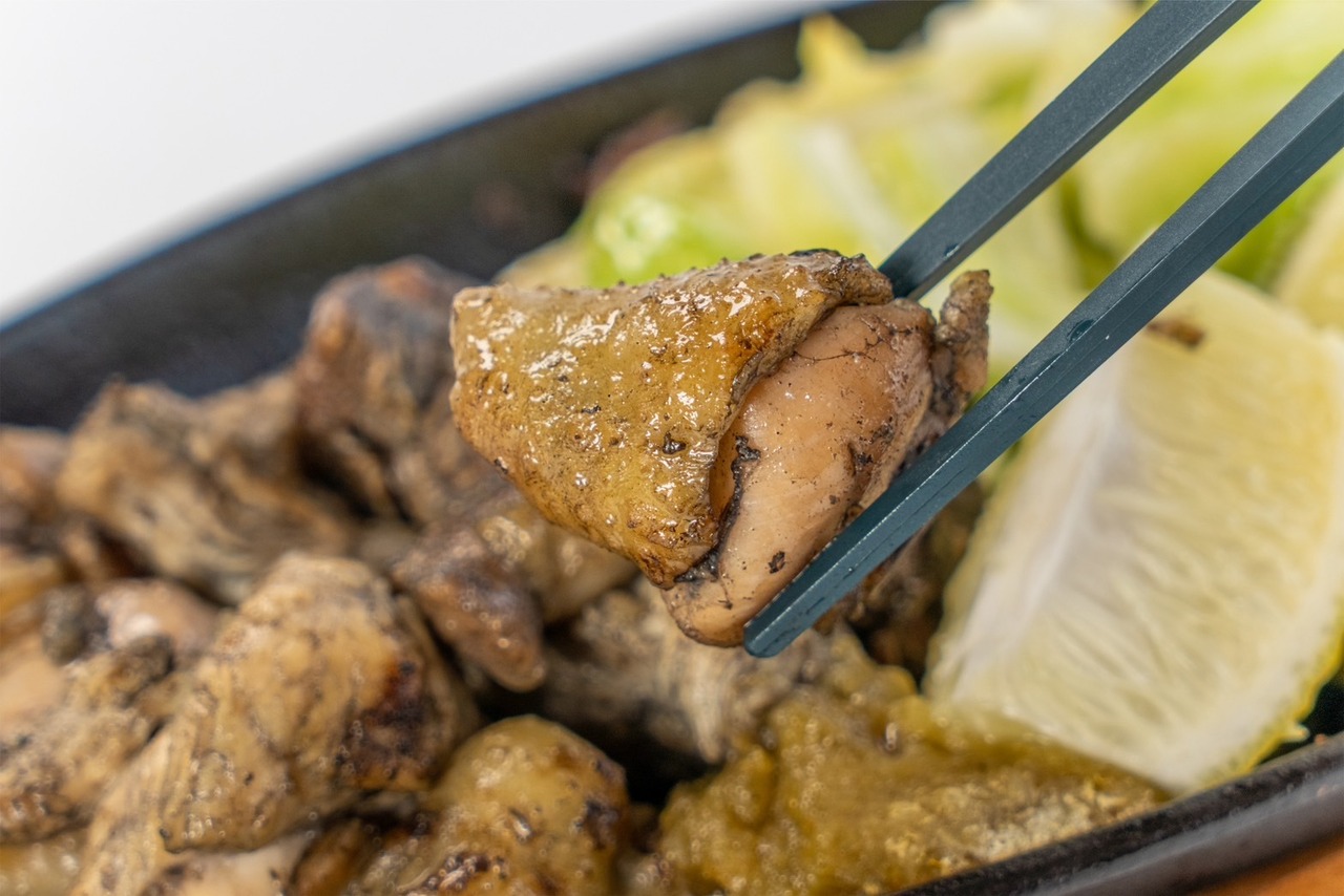 みやざき地頭鶏のもも・むね肉のみを使用した炭火焼きです。